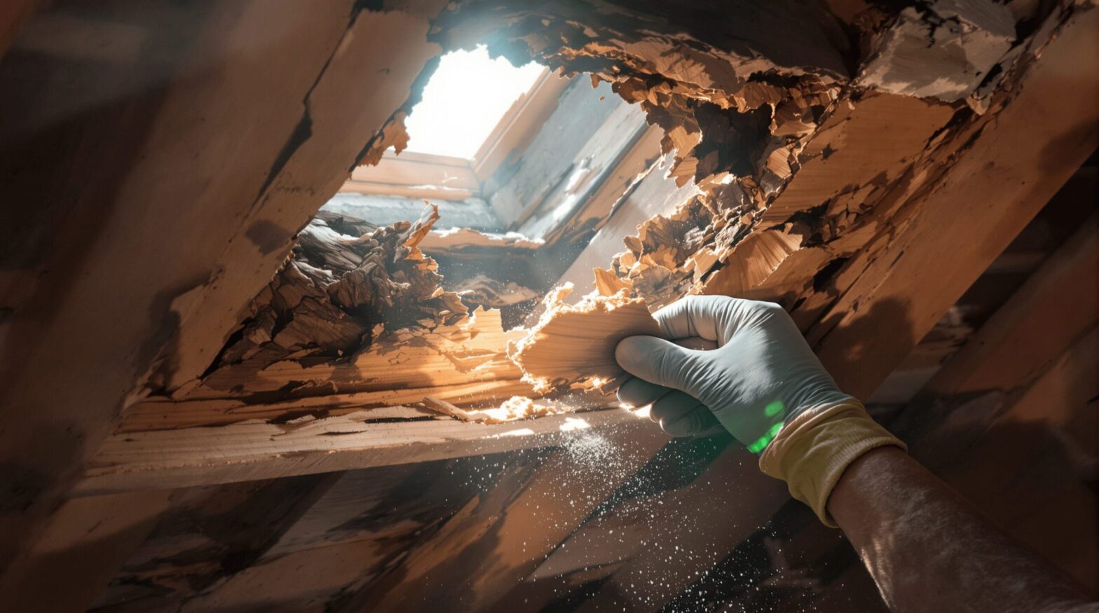 - Dachkonstruktion und Eindeckung: Beurteilung des Dachstuhls auf Schädlingsbefall (z.B. Holzbock) oder Fäulnis sowie der Dacheindeckung auf Undichtigkeiten und Alterungserscheinungen.